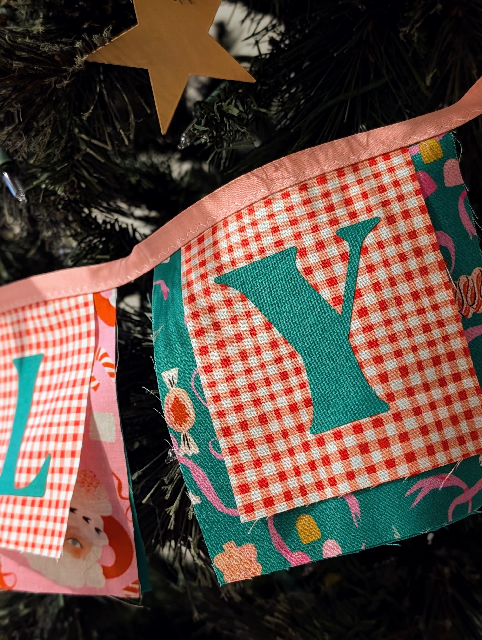 "Jolly" Fabric Bunting in Teal, Pink and Red